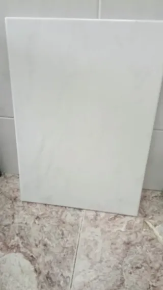 Lote de baldosas de cerámica en color blanco. - Medidas: 31.5cm x 45.2cm. - Acabado liso. Hay 18 Tengo mas unas cuadradas y otras rectangulares de regalo 3metros cuadrados A recoger en CONESA