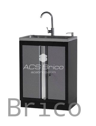 ARMARIO TALLER BASE 2 PUERTAS Y GRIFO ALYCO 192855 DESCRIPCIÓN: - Armario base con fregadero, 2 puertas con cerradura y 2 baldas interiores, sólido y muy válido para ambientes de taller con herramientas pesadas. - Al disponer de cerraduda, permite guardar herramientas valiosas con seguridad. - El interior permite modificar la altura de las baldas, permitiendo una distibuición que permite guardar herramientas voluminosas. - Forma parte de los conjuntos modulares y pueden realizarse combinaciones de armarios y módulos según necesidades. - El grifo y el fregadero vienen incluidos. - Incluye jabonera en un lateral (con botella). - Se...