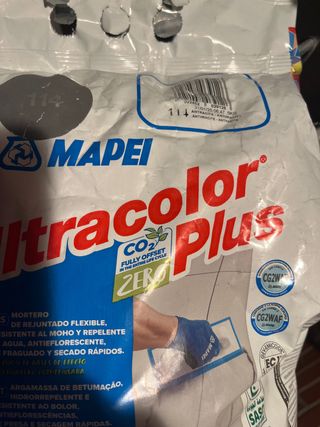 3 sacos que caducan en enero de MAPEI Ultracolor Plus, color 114 Anthracite. Producto para juntas de baldosas. los 3 sacos 15€ - Mortero de rejuntado flexible. - Resistente al moho y repelente al agua. - Antieflorescente. - Fraguado y secado rápidos. - Argamassa de betumação hidrorrepelente. - Resistente ao bolor. - Antieflorescências. - Presa e secagem rápidas.