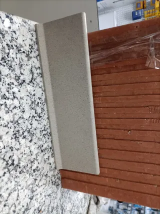 Rodapié de la marca Mirage. Cerámica italiana de muy alta calidad. Hay unas 30 cajas. Se venden por caja de 28 unidades Mide 30x10 La caja sale por 20 euros - Color: Beige con motas. - Material: Gres porcelánico.