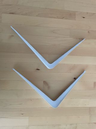 Pareja de soportes de pared, color blanco. Son grandes y resistentes. No presentan ningun desperfecto. - Para estantes o baldas. - Metal resistente. - Color blanco Disponibles para envío 📦