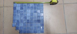 Gresite Azul sin utilizar Dimensiones del gresite unidad: 3.5cm x 3.5cm Dimensiones de la placa: 32.5cm x 32.5 cm Número de placas: 16 Llevándote 1 Unidad placa 20€ Llevándote todas las unidades 17€/placa