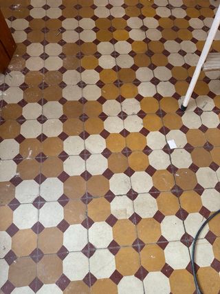 Preciosa colección de baldosas hidráulicas. Ideales para restaurar o dar un toque vintage a tu hogar. - Diseño geométrico en tonos ocres y marrones. - Material resistente y duradero. - Perfecto estado de conservación.