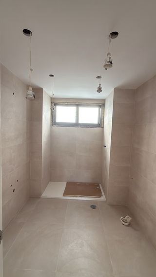 Pedro Feitosa, tel: 651 40 43 57 Espacio de baño con acabados modernos. - Paredes y suelo alicatados en tonos neutros. - Plato de ducha con desagüe. Servicios de alicatado en general, instalación de pisos de vinilo, paredes de ladrillo o pladur y pintura.