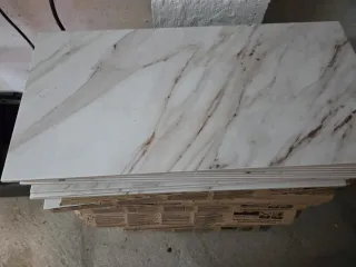 Preciosa pieza de mármol blanco y un paquete de baldosas blancas. Ideales para reformas. - La pieza de mármol es grande y de un blanco con vetas grises, mide 79x 38,5 cm - El paquete de baldosas tiene 9 baldosas blancas lisas de 29,5 x 40,5 de la marca Terra Decor - Perfectos para darle un toque elegante a tu hogar. Lote a recoger en Pobra Caramiñal