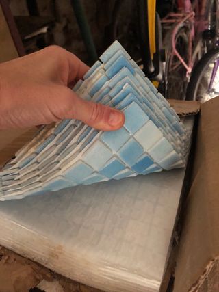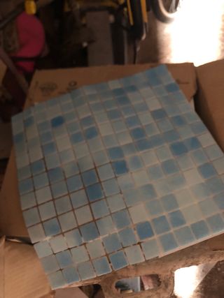Lote de azulejos de mosaico para piscina. Tienen un diseño degradado en tonos azules y blancos. - Mosaico de azulejos. - Tonos azules y blancos. 18 unidades= 2 metros cuadrados