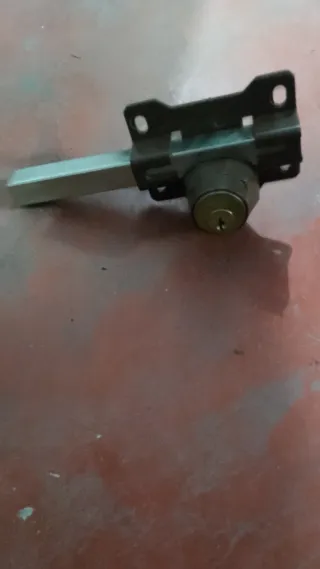 Cerradura de seguridad metálica con acabado plateado y cilindro de latón. - Mecanismo de cierre con llave. - Soporte de montaje incluido.