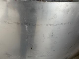 Chapa de aluminio con las siguientes especificaciones. - Medidas: 0.80 x 1000 x 2000 mm. - Acabado: 2B. - Lado: B. - Lote: 105305. - Tipo: TKMPL.