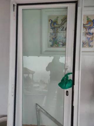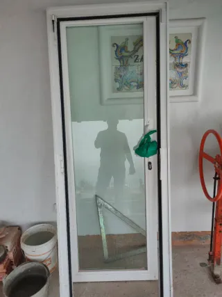 Puerta de aluminio con cristal de seguridad. - Marco de aluminio blanco. - Cristal transparente.