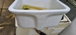 Pila de cerámica blanca, ideal para exteriores o zonas de trabajo. - Material: Cerámica. - Color: Blanco..