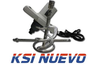 Batidora para mezclar cemento y otros materiales de construcción. Cuenta con un motor eléctrico y un eje mezclador en espiral. - Eje mezclador en espiral. - Mango ergonómico.