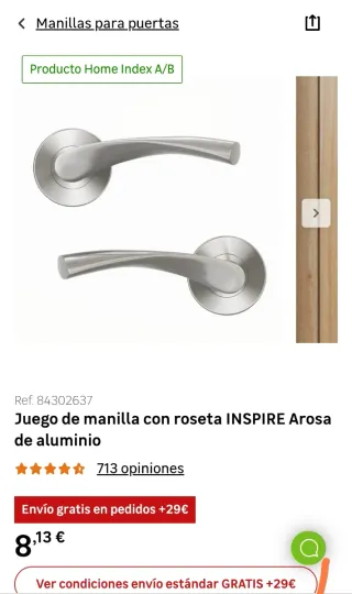 Juego de manillas Inspire Arosa en color plata. - Diseño moderno y elegante. - Fabricadas en aluminio. Nuevas sin estrenar/abrir. Conjunto de 4 unidades disponibles. 5€/unidad