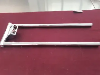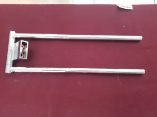 Toallero doble de la marca Roca. Fabricado en metal cromado. - Diseño moderno y funcional. - Dos barras para colgar toallas.
