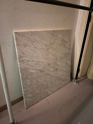 Base cuadrada de mármol con un diseño veteado. Perfecta para usar como base de mesa. - Material: Mármol natural. - Forma: Cuadrada. - Medidas: 90x2x90 cm No se realizan envíos. Muy pesado. Pl. Catalunya, 4, 08002, Barcelona