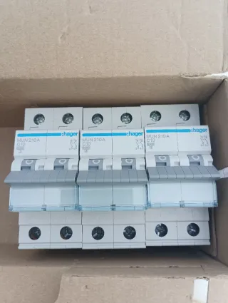Magnetotérmico de la marca Hager, modelo MUN 210A. Precio por unidad 8€, pack de tres 20€ - Capacidad de 10A. - Tensión nominal de 400V. - Curva C. - Poder de corte de 6000A.