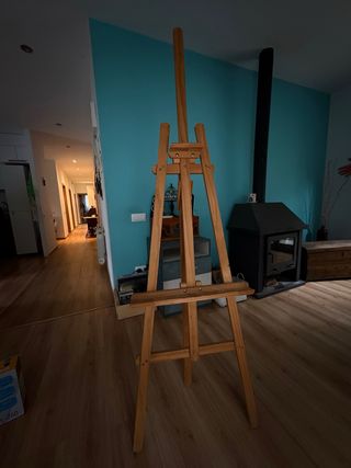 Trípode de madera para artistas, ideal para sostener lienzos o tableros. - Material: Madera. - Diseño ajustable en altura. - Estable y fácil de montar.
