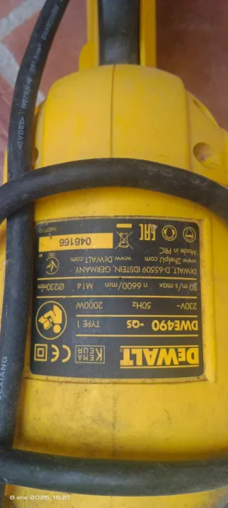 Amoladora angular DeWalt en buen estado, con poco uso. - Color amarillo y negro. - Mango auxiliar. - Protector de disco.