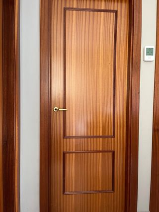 Puertas de madera maciza en muy buen estado. Ideales para cualquier estancia de tu hogar. - Cuatro puertas de madera. - Color madera natural. - Con tiradores dorados. - Listas para instalar. - Sin premarcos. ( De grosor tienen 3,5 cm )