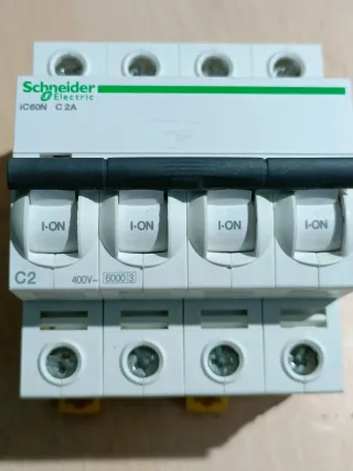 Interruptor automático magnetotérmico Schneider Electric. 70 € el grupo completo o 10 € la unidad - Modelo: IC60N - Intensidad: C2A - Tensión: 400V - Poder de corte: 6000 3