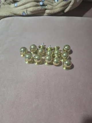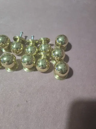 Lote de tiradores de pomo con acabado dorado. Pomos - Diseño esférico. - Incluye tornillos para su instalación.