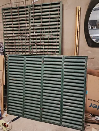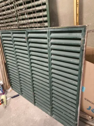 Mallorquinas de lamas fijas en color verde. Ideales para ventanas o fachadas también como puertas - Fabricadas en metal. - Diseño clásico y funcional. Me queda una de 150cm ancho -122cm alto con marco Y otra de 120cm x 209cm de alto sin marco