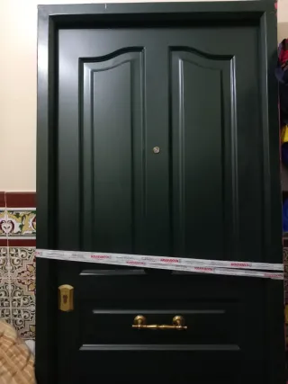 Puerta de seguridad blindada para exteriores. Diseño robusto y elegante. Recién quitar de una sala de expocicion. Nueva a estrenar. - Acero inoxidable. - Color verde mate. - Cerradura dorada. - Tirador dorado.