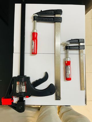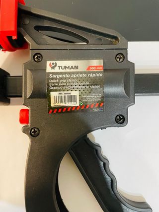 Set de 3 sargentos de apriete rápido de la marca TUMAN. Ideales para trabajos de carpintería o bricolaje. - Mango ergonómico para un agarre cómodo. - Mecanismo de liberación rápida. se ha utilizado solo 1 vez para enderezar el aluminio de un portátil Macbook que y me vino de maravilla, desde entonces no lo he vuelto a utilizar más aunque estas herramientas son ideales para carpintería o Bricolaje y yo la usé para enderezar un portátil 😂 se venden los 3 juntos