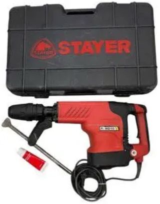 Martillo demoledor Stayer modelo MD10 en color rojo y negro, con su maletín de transporte. - Incluye cincel. - Usado pero en buenas condiciones - Maletín rígido para protección.
