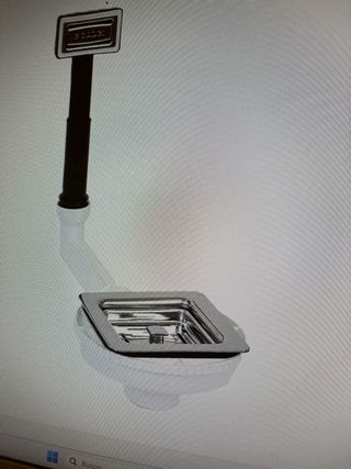 Válvula de desagüe cuadrada con acabado satinado de la marca Poalgi. - Diseño sencillo y elegante. - Material metálico resistente.