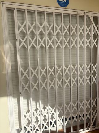 Reja de seguridad tipo tijera para balcones o puertas. - Diseño plegable. - Material metálico. - medida aproximada de Balconera 160 × 2 30