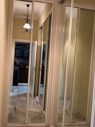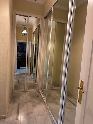 Conjunto de puertas correderas con acabado de espejo. - Diseño moderno y funcional. - Ideales para optimizar el espacio. - Medidas: 3 puertas 87 x 2,50 2 puertas 45 x 2,50
