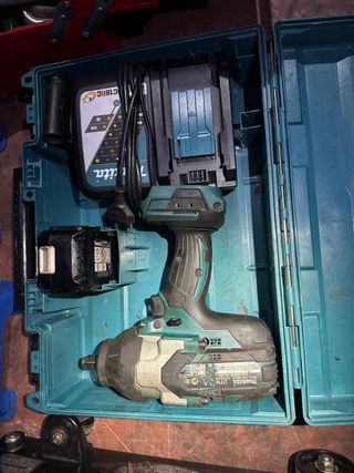 Llave de impacto profesional Makita DTW1001 con motor de 1000 Nm. - Incluye cargador rápido Makita DC18RC. - Incluye una batería Makita de 18V, 5ah - Se entrega en su maletín original. - Usado pero funcinando perfecto. -Se regalan 4 vasos de impacto, 17,19,21,22mm Negociable, se vende por mudanza al extranjero. Hay mucho en mi perfil.
