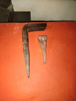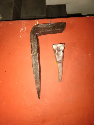 Herramientas de forja, un tazo de yunque y un punzón. - Material: Metal. - Diseño rústico y robusto.