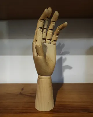 Mano articulada de madera, ideal para artistas y estudiantes. - Material: Madera. - Diseño articulado para diferentes poses.