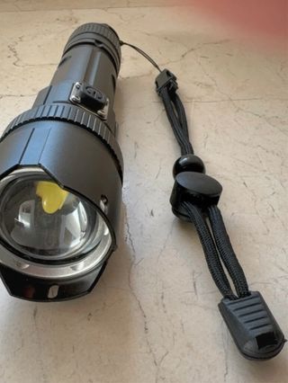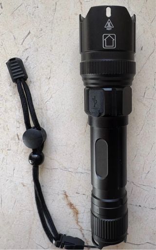 Linterna LED recargable, modelo Widfire 4000. mAh, LC 18750, resistente al agua, para caminar y acampada. - Diseño robusto y compacto. - Incluye correa de sujeción. - Interruptor lateral de encendido/apagado.
