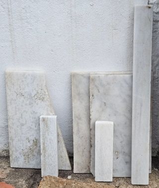 Varias piezas de mármol de diferentes tamaños y formas. Color blanco. Sólo recogida o venta en punto cercano.