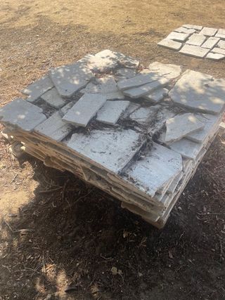 Se venden baldosas de mármol travertino hay unos 20 metros y 8 metros de canaletas de hormigón. Pregunten sin compromiso 697987486 - Material: Mármol travertino y hormigón. - Uso: Ideal para exteriores o proyectos de construcción.