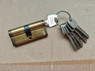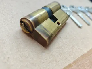 Se vende bombín estándar Azbe de 30x30 mm, ideal para cualquier tipo de cerraduras. Incluye un juego de cinco llaves. - Cilindro de latón. - Medidas: 30 mm (exterior) + 30 mm (interior). - Acabado en latón. - Incluye 5 llaves.