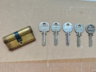 Cilindro de seguridad para cerradura con medida 35x35 mm. Incluye un juego de 4 llaves originales. - Cilindro de latón con sistemas antirrobo. - Marca FAQ. - Fabricación española Tag: bombín, bombillo, cerradura, cilindro