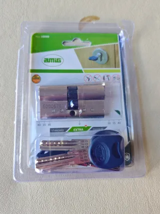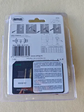 Cilindro de seguridad Amig con doble embrague (se puede abrir incluso con una llave puesta al otro lado). Tamaño 30x30 leva larga. Incluye cinco llaves, tornillos y tarjeta de seguridad. Abierto por error. Puente reforzado, antiganzúa, antibumping, antirrotura, antitaladro