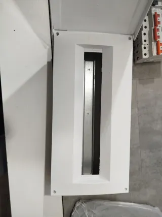 Caja para empotrar en la pared, diseñada para alojar automáticos. - Color blanco. - Diseño rectangular con apertura central.