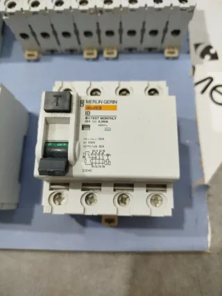 2 Und Interruptor diferencial Merlin Gerin multi9 ID. - Intensidad nominal: 40A. - Corriente residual: 0,300A. - Tensión nominal: 400V. - Poder de corte: 10kA. - Test mensual.