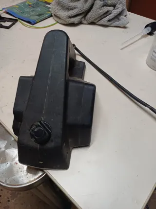 Cerradura completa con signos de óxido. - Mecanismo de cerradura. - Manilla de metal.