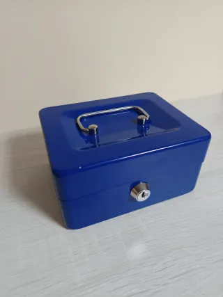 Caja de efectivo azul con cerradura