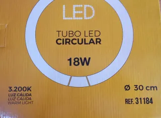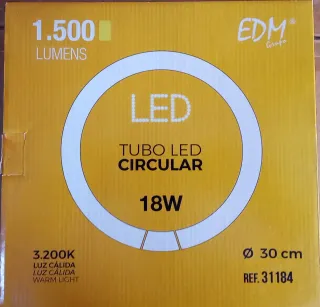 Tubo LED circular de 18W con 1.500 lúmenes y luz cálida. - Diámetro: 30 cm - Temperatura de color: 3.200K (Luz cálida / Warm Light) - Potencia: 18W - Flujo luminoso: 1.500 lúmenes - Referencia: 31184 Cebador incluido