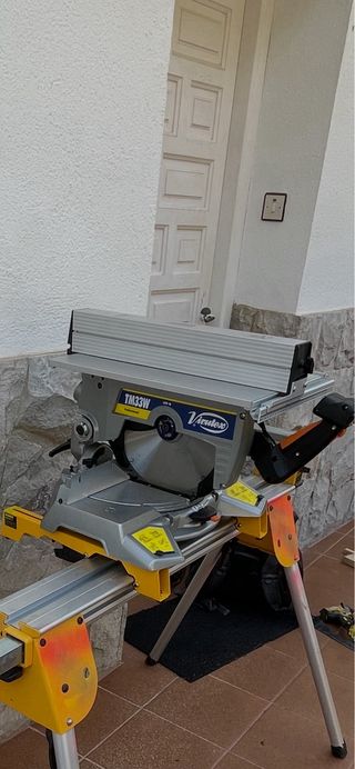 Sierra de mesa Virutex TM33W, modelo profesional. - Diseño compacto y robusto. - Guía de corte ajustable. - Asa ergonómica para un mejor agarre. Gastado una vez