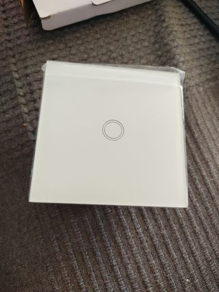 Tengo 2 Interruptor táctil Wifi, nuevo a estrenar. Es de color blanco y tiene un diseño elegante y minimalista. - Ideal para controlar luces. - Fácil instalación. - Superficie de cristal.