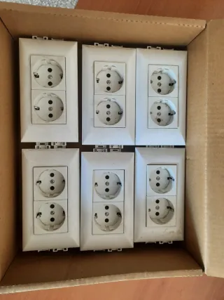 Se venden enchufes dobles de la marca Legrand para regleta de superficie. Están en buen estado. - Marca: Legrand - Tipo: Doble enchufe para regleta - Color: Blanco