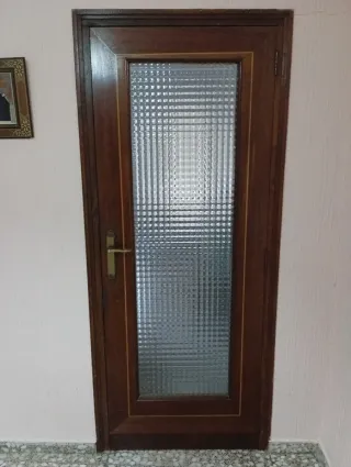Puertas de madera, una con panel de cristal, tengo un total de ocho puertas, cristal con relieve. Vale la pena venir a por ellas.