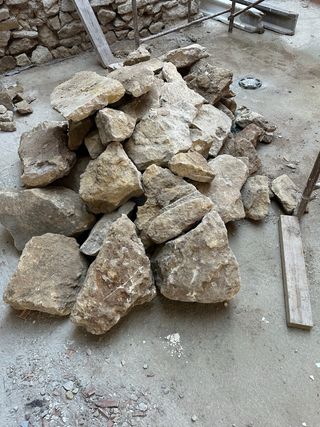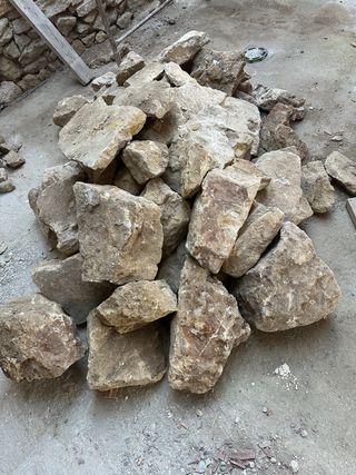 Lote de piedras de diferentes tamaños, ideales para la construcción de muros o elementos decorativos. - Tonos tierra y grises.